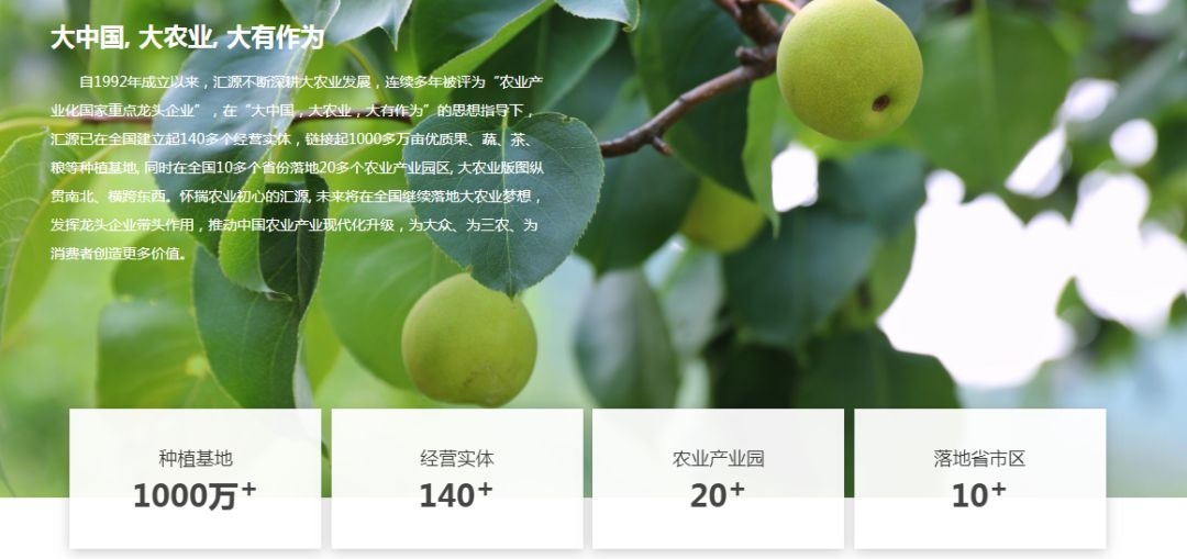 匯源官網對農業板塊的介紹。圖片來源:網頁截圖