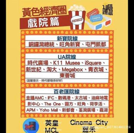 除了罷看“中資”賀歲片,亂港分子還列了一個“黃色經濟圈”戲院篇,其中英皇、嘉禾被列入“罷看”影院。