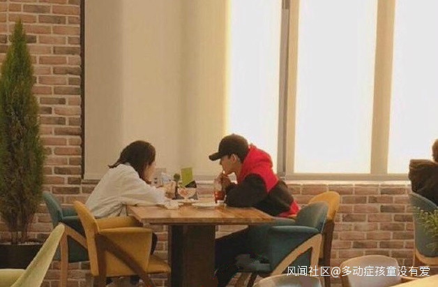 這張照片中,我們可以看到兩人面對面吃飯,十分甜蜜。