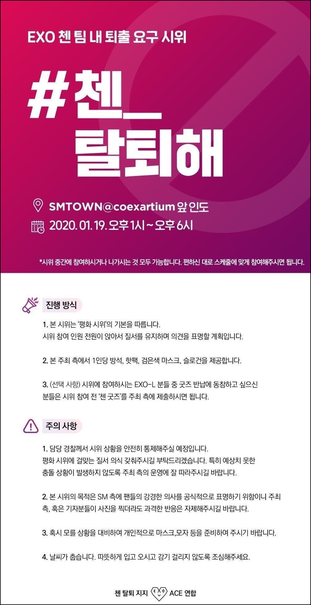 此外,粉絲們要求SM娛樂在1月18日之前給出處理答覆,如果無任何答覆,他們將採取一切直接或間接形式的遊行示威。