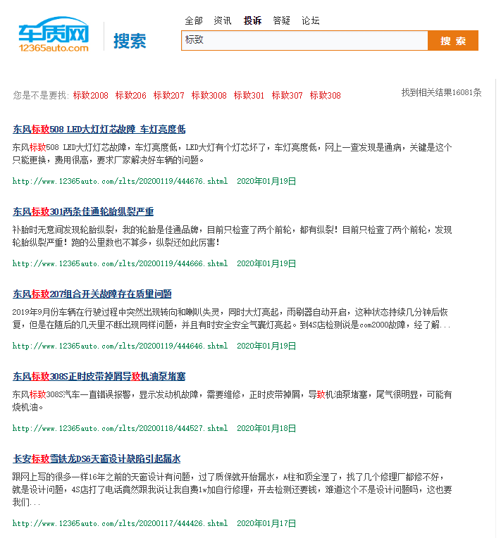 其實關於神龍汽車造工出問題之事屢見不鮮,從車質網的投訴平台上搜索,有關東風標緻的投訴量高達16081條,而雪鐵龍也有13311條,足見其質量堪憂。
