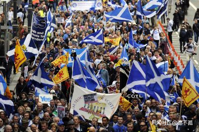 富時合窮時分——蘇格蘭的離心趨勢還有現實利益考慮。在“日不落帝國”時期,蘇格蘭人倒是背靠大樹好乘涼,但隨着二戰後英國逐步淪為世界上的二流國家,蘇格蘭人要求分家獨立的聲音又多了起來。一個典型標誌是,曾經雄霸蘇格蘭的工黨漸漸被邊緣化,取而代之的是主張蘇格蘭獨立的蘇格蘭民族黨。2014年,倫敦沒能頂住蘇格蘭方面的壓力,允許蘇格蘭舉行獨立公投,55%的蘇格蘭選民選擇繼續留在英國,但高達45%的選民支持獨立説明其分家情緒之高。去年12月,經歷了3年“脱歐”折騰的英國迎來大選,打出“二次公投”口號的蘇格蘭民族黨,一舉拿下了議會下院蘇格蘭59個席位中的48席,大有要一統蘇格蘭的架勢。而這也是其黨魁斯特金敢於叫板唐寧街10號的底氣所在。