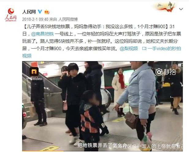 事情發生在2018年年根兒底下,視頻中的這位媽媽,因為孩子不小心把車票玩兒丟了,情緒崩潰,在地鐵上大聲訓斥孩子。