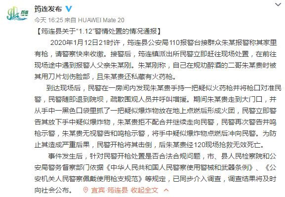 “民警懷疑男子持有槍械將其擊斃”後續 官方通報:點燃疑似爆炸物衝向民警來源:筠連發布