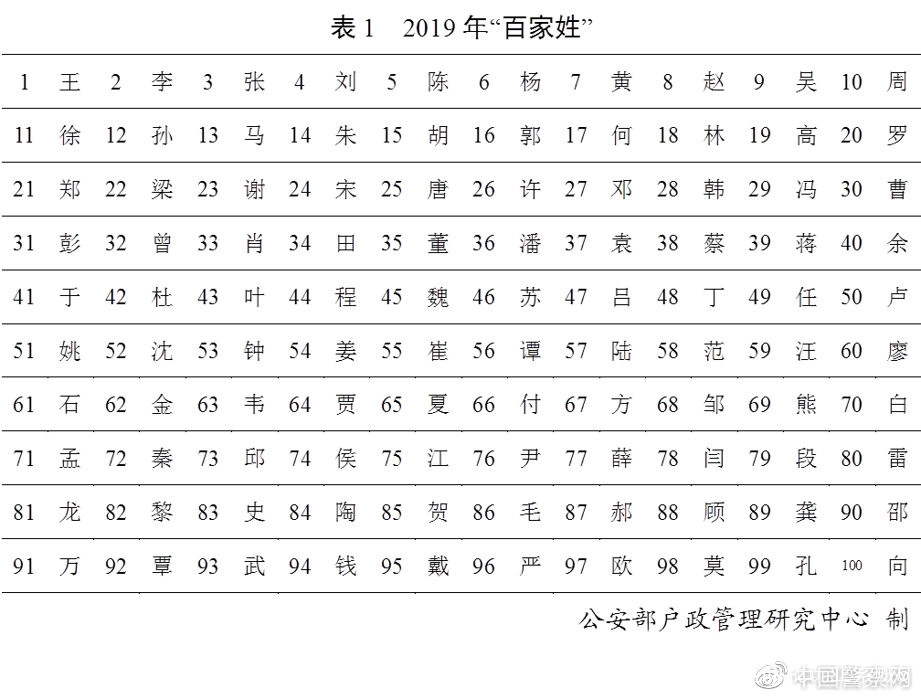 公安部户政管理研究中心依託全世界最大、覆蓋全國14億人口的信息系統,採用大數據技術對全國户籍人口(不含港澳台地區)的姓氏和姓名用字、2019年新生兒姓名用字等情況進行了統計分析,再度推出全國姓名報告。