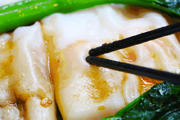 一家好的腸粉店,一份什麼都不加的齋腸都可以撐得起一場大局。只需一點醬汁就好,一口下去,舌尖先感受到的是一種名叫爽滑的滋味,牙齒輕輕觸碰就可以斷開,咀嚼之間嚐到的是米香,最後到肚裏,是一種碳水帶來的酣暢淋漓。