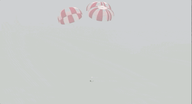 5分36秒,4個降落傘拋出,20秒後完全展開。