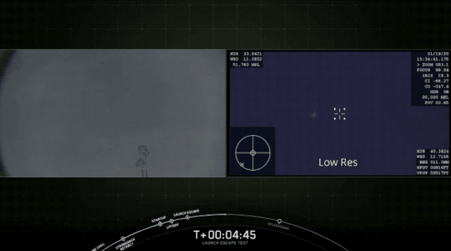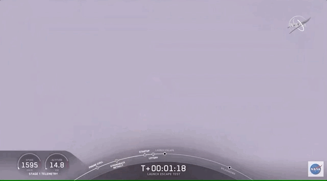 但整個測試並沒有到此結束,太空艙藉助推進器,還在進一步離開爆炸的火箭。