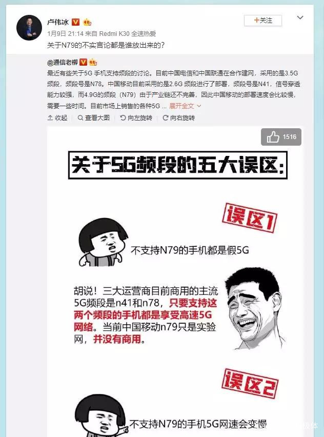 隨後急於上馬的5G手機K30,也因為不支持N79頻段,不符合運營商的強制入網標準。面對工信部和運營商的明確發聲,如中國移動要求2020年“5G手機必須支持N79”,工信部也明確N79能夠“為個人和行業用户在獲得5G服務方面提供了更多選擇”,小米盧偉冰還堅持“N79頻段沒有用”,結果再次被搭載了雙模六頻支持N79頻段的榮耀V30系列打臉。