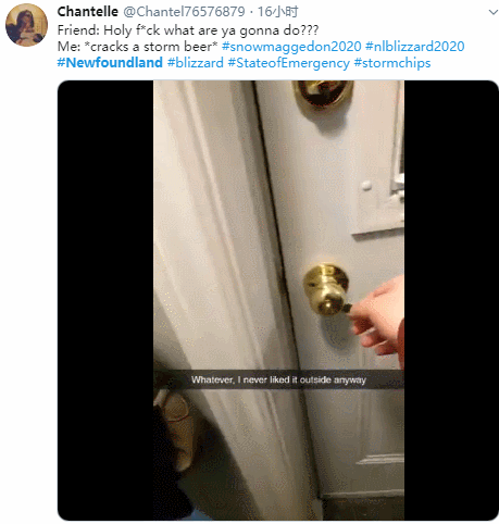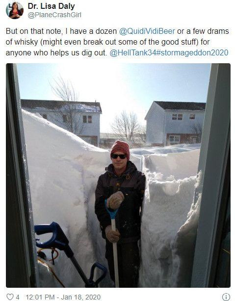 “我有一打啤酒和威士忌,現在在線求個剷雪戰友。”