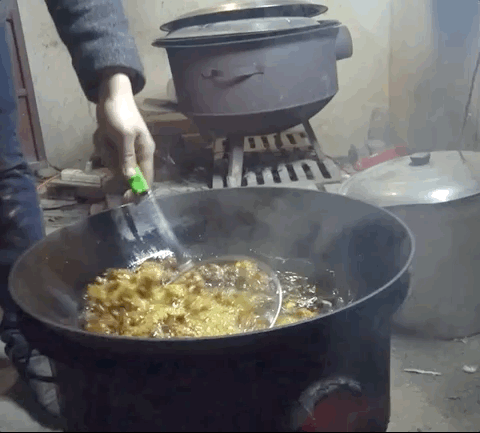年夜飯的第一步是煉油。