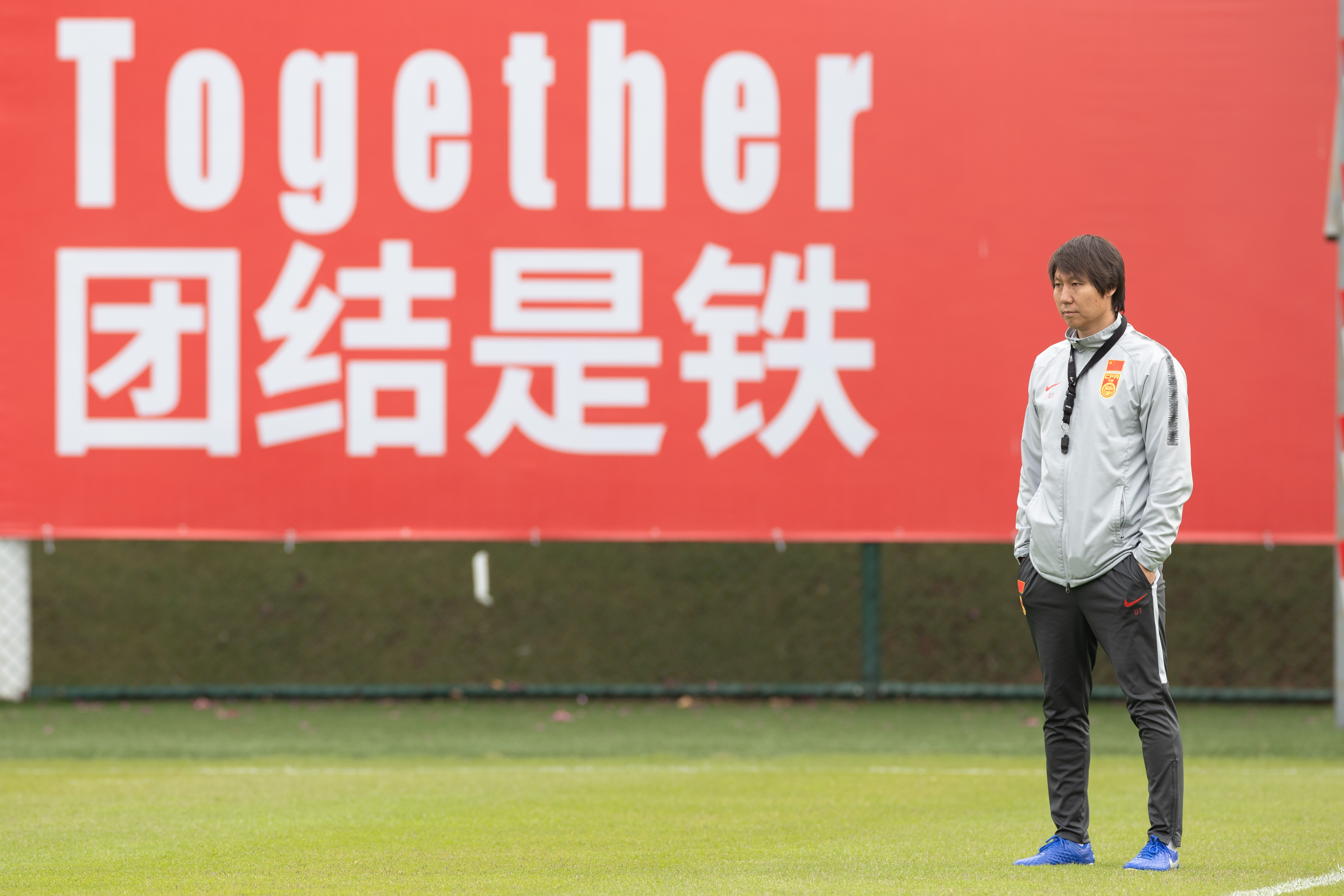 國足新帥李鐵監督球員訓練。新華社 圖