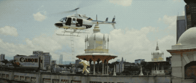 **唐季禮:**我會的,先試一次給演員看,包括曾江從直升飛機摔到那個火車上,那也是我替的。
