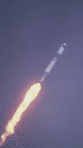 畫面顯示,發射約2分24秒後,已爬升至最高點的飛船拋棄其主幹段,由較小的“天龍座”推進器調整方向,使載人艙再入大氣層,呈自由落體狀向大西洋墜落。