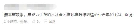 對於暴徒的惡行,有網友批評“沒本事競爭、沒能力生存的人才會不停地搞破壞表達心中自卑的不忿……鄙視”、“只有弱智廢青才會這樣做!這樣做可以爭取民主?只不過讓香港人更憎恨那些人渣,幼稚”。