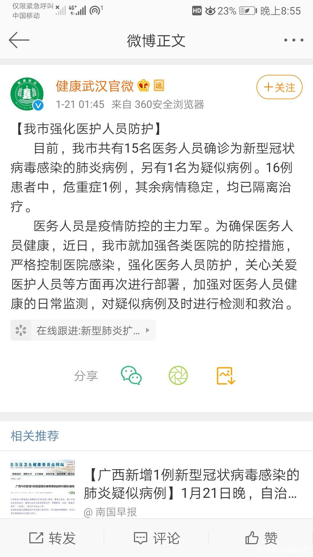 好吧,有人説不算,但21日凌晨,武漢衞健委也公佈了醫護人員受感染的公告。