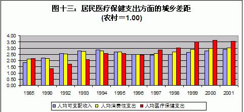 2001年,城鎮居民的可支配收入是農村居民純收入的2。9倍,還可以享受由國家補貼的醫療保障;農民收入低得多,卻必須承擔醫療保健的所有費用。中國衞生保障制度如此不公平,實在令人觸目驚心。