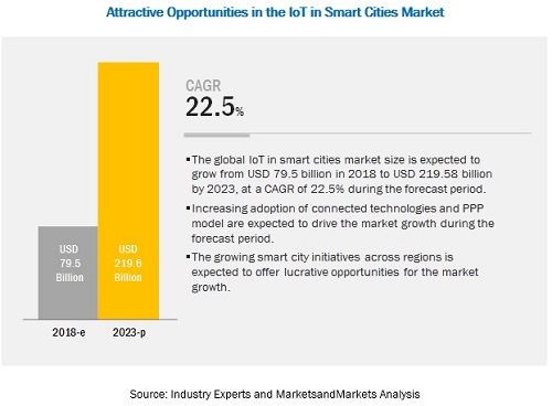 2019年9月,工信部發布《關於促進製造業產品和服務質量提升的實施意見》,要求加快發展5G和物聯網相關產業。市場研究機構MarketsandMarkets在其報告中稱,2018年智慧城市IoT市場規模為795億美元,到2023年這一數字預計將增長到2196億美元,預計2018—2023年的年複合增長率為22.5%。