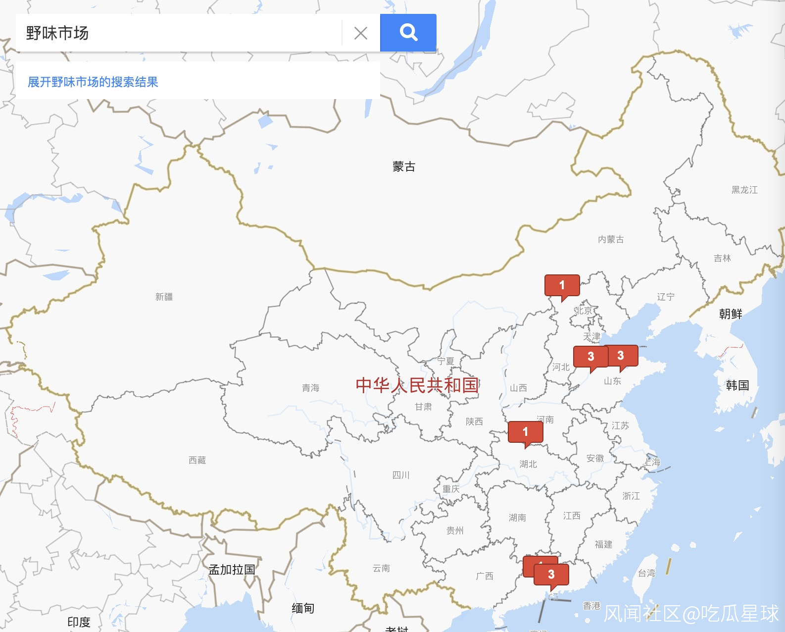就近尋找野味市場確實是件不容易的事情。當年非典過後,我國曾一度關閉境內所有的野味市場。但一些地方的野味市場還是重新開放了,只是數量較少: