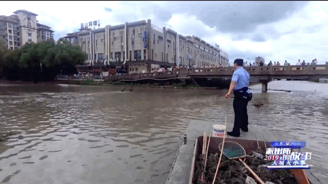 警察叔叔辛辛苦苦坐船撐杆去攆鵝。