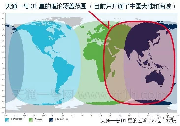 ▲ 天通一號暫時只覆蓋國內和周邊,稍後02星覆蓋一帶一路,最後03星覆蓋全球。