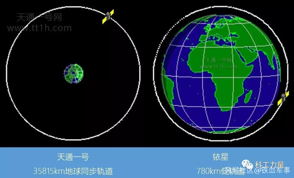 ▲ 天通一號運行軌道和銥星運行軌道對比