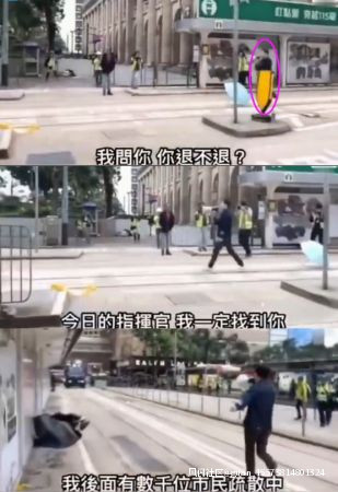在示威衝突現場,“威風凜凜”的鄺俊宇,手持擴音器以一已之力“堵住”警方,回過頭讓現場的暴徒快溜,黑社工、暴徒急救員在他的指揮下逃跑,鄺俊宇隨後將這段視頻放到他的社交帳號上。有網友看後“贊”鄺俊宇演技堪稱“影帝級”。
