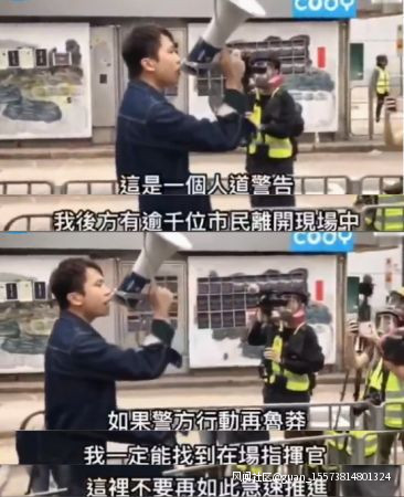 鄺俊宇還對警方説:“這是一個人道警告。”並且又重複提到“我後方有一千多名’市民’離開,如果警方行動再魯莽,我一定能找到在場指揮官”,並要求警方不要再急速推進。