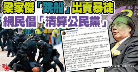 香港新聞網1月21日電香港反對派議員、“公民黨”主席梁家傑日前接受港媒專訪時,坦承不可能特赦所有暴徒,部分只能酌情減刑。報道一出,有泛暴派批評梁是“泛民政棍”,出賣“抗爭者”,還提議清算“公民黨”。