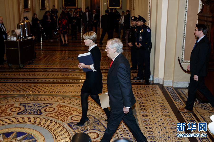 1月21日,在美國華盛頓,美國國會參議院多數黨領袖麥康奈爾(前)前往參議院。 新華社發(沈霆 攝)