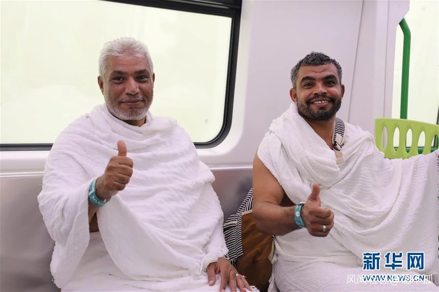 ▲ 乘坐輕軌列車的朝覲者稱讚列車快捷舒適。(來源:新華網)