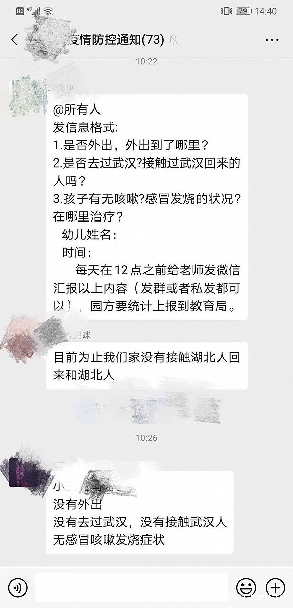 鄧州市民喬陽對界面新聞記者稱,她兒子所在的中學發了防疫宣傳單要求家長填寫回執,女兒所在的幼兒園要求每天中午12點之前給老師發微信匯報是否外出、是否去過武漢、是否接觸過武漢回來的人,以及孩子有無咳嗽以及感冒發燒的狀況,若有過症狀的孩子接受過治療,需要報明在哪裏治療。