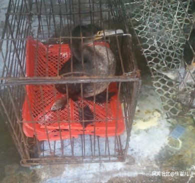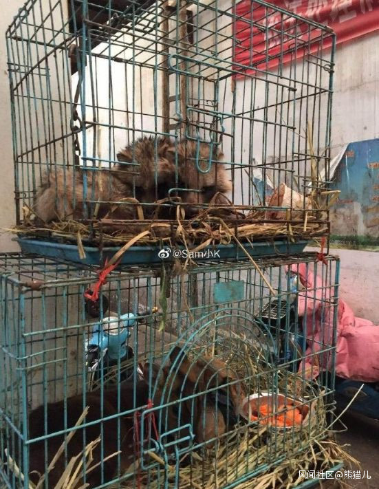 販賣的野生動物種類繁多,不看環境好像野生動物園一樣。這是一丘之“貉”的 貉。
