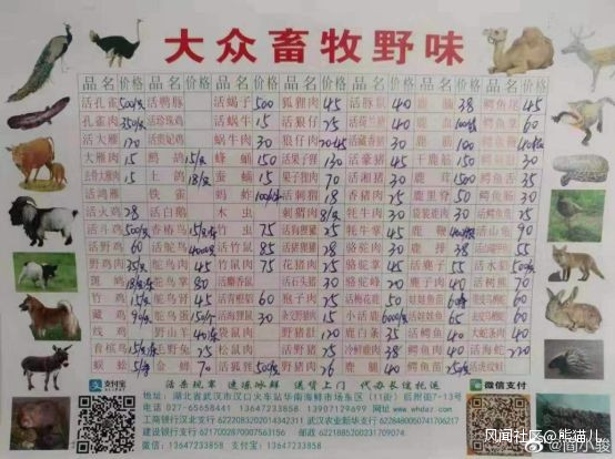 最貴的是小活鹿,最便宜的是蜈蚣,5元一條。此外,活鴕鳥4000元一隻,活孔雀和活狐狸均為500元一隻。價目表中還有小部分野味沒有寫明價錢。