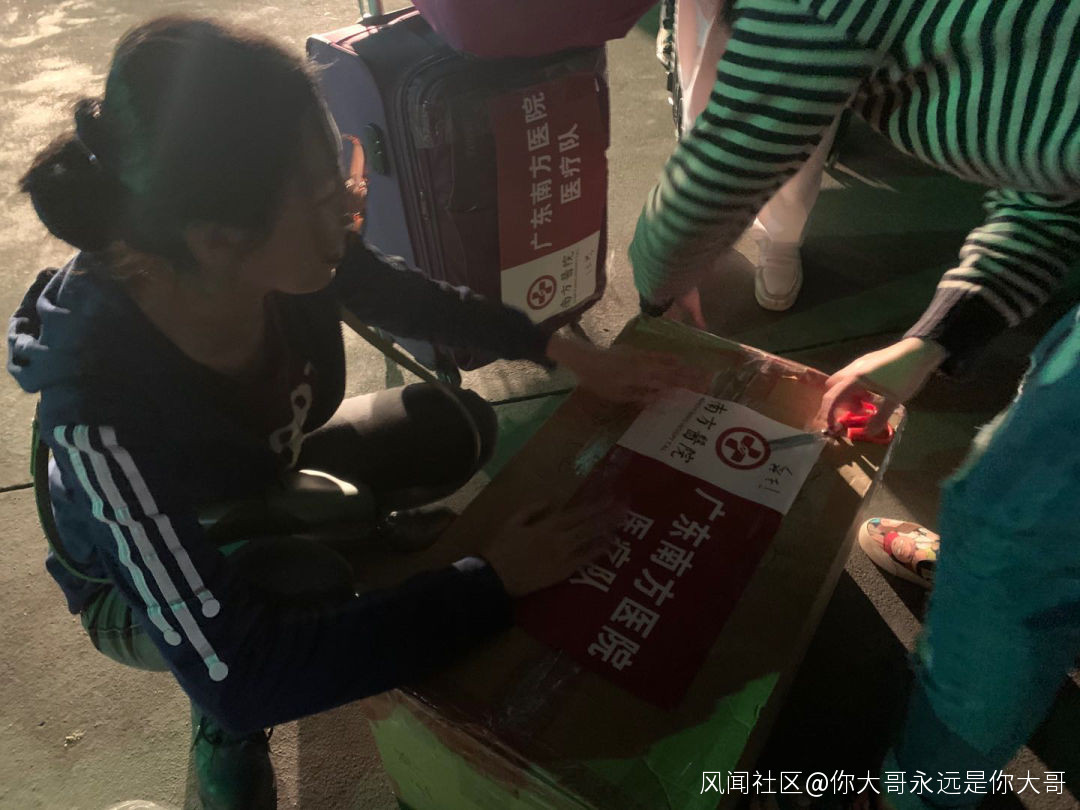 出發前,隊員們在行李箱上貼上“廣東南方醫院醫療隊”的貼紙。新京報記者周小琪 攝