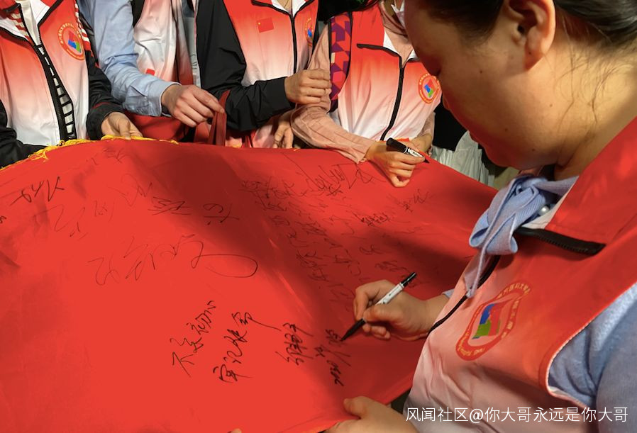 隊員們在橫幅上簽字。新京報記者周小琪 攝