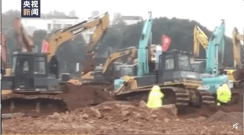 火神山施工現場,所有人緊鑼密鼓地工作着。/央視新聞