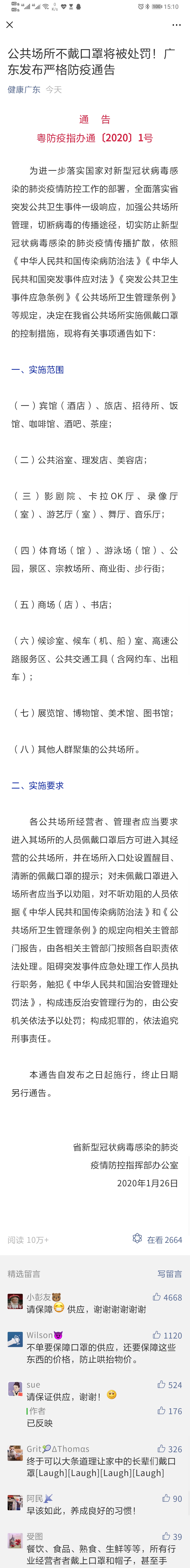 公共場所不戴口罩將被處罰!廣東發佈嚴格防疫通告_風聞