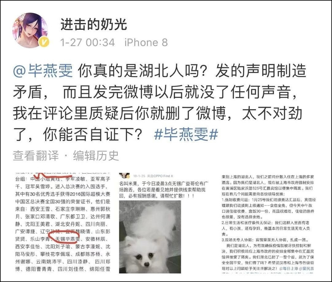 除此之外,@畢燕雯 到底是不是湖北人也受到質疑。