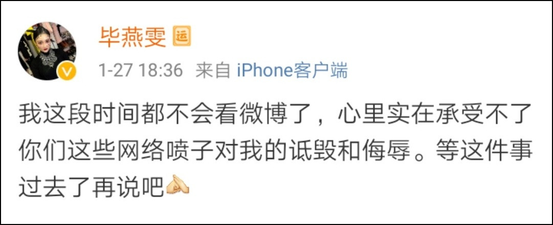 目前,@畢燕雯 與網友之間的罵戰以她的單方面休戰而告終。