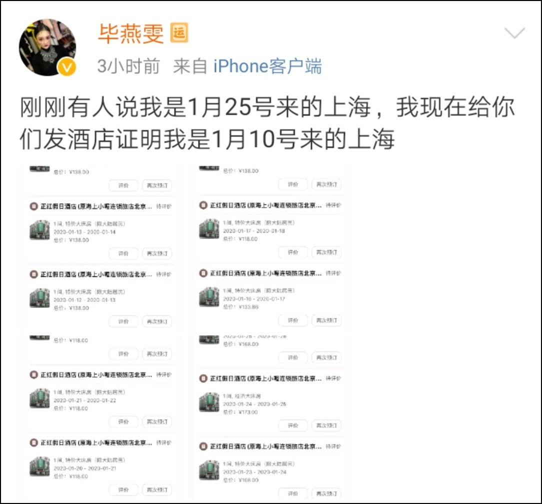 而是曬出自己預定的車票、酒店收據,證明自己是在1月10日到達的上海,計劃要在這邊居住三個月左右,甚至都已經向房東交了房租,而非網友説的1月25日才抵達上海;此外還上傳了一段視頻,顯示酒店方面的確有在向接受隔離的一眾人等收費,再次把矛頭指向政府。
