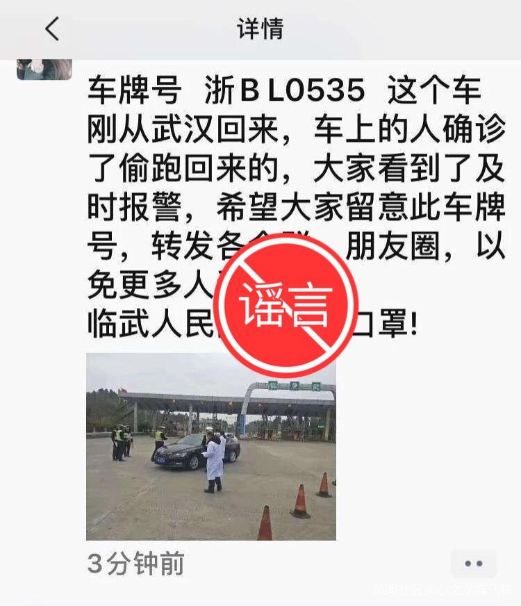 “浙BL0535”從武漢回來,車上確診患者偷跑回來?謠言!