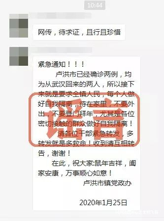 經權威部門證實,此消息純系謠言。1月24日晚上21時,雙牌縣公安局抓獲編造並傳播謠言信息的盧某(男,雙牌縣人)。通過民警約談和訓誡教育,盧某認識到了自己的錯誤,寫出了深刻的檢討書,並在其手機微信羣和朋友圈對自己散佈謠言的行為向公眾進行了澄清和道歉。