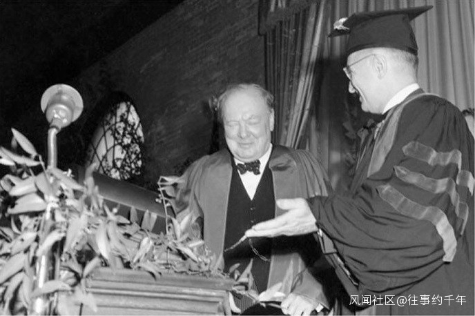 1946年3月5日,丘吉爾在美國富爾頓城威斯敏斯特學院發表了著名的鐵幕演講,右為時任美國總統杜魯門