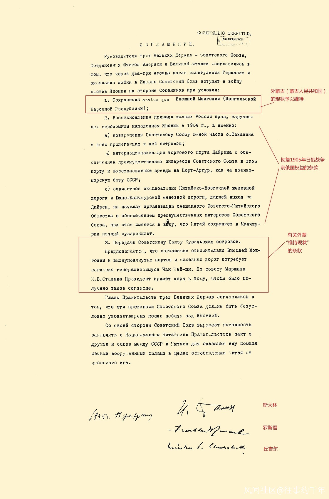 三強領袖同意,蘇聯之此項要求須在擊敗日本後毫無問題地予以實現。