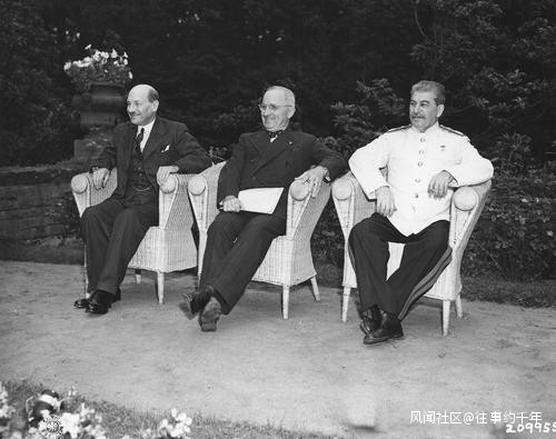 1945年7月17日,斯大林、杜魯門和丘吉爾來到德國柏林西南的波茨坦召開會議,討論戰後事宜。會議進行到一半,丘吉爾趕回英國參加大選,但他代表的保守黨選舉失利,勝出的工黨領袖艾德禮代表英國參加了最後幾天的會議。