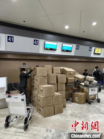大愛無疆,27日下午3時,菲律賓菲華聯誼會、旅菲校友聯合會、菲華新聯工會、菲律賓《世界日報》,將兩天內募捐的首批200多箱新型冠狀病毒肺炎防控物資運抵馬尼拉國際機場。 關向東 攝 (抗擊新型肺炎)菲華募捐千萬比索防控物資馳援武漢廈航免費承運