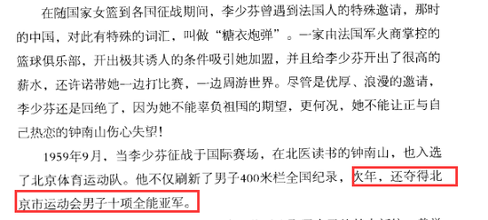至於十項全能冠軍的説法,《鍾南山傳》講述他和妻子的章節裏曾經提到過,鍾南山在1960年奪得了北京市運動會男子十項全能亞軍。