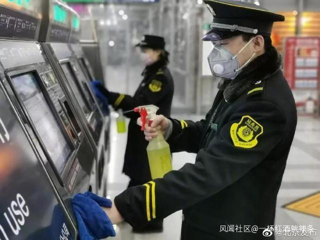 目前北京地鐵所轄各線已進一步加強消毒通風措施。地鐵車站公共區域每天消毒五次,對自助售票機具和閘機每小時消毒。列車回庫清掃衞生前後進行消毒。運營期間有折返條件的在折返時消毒,沒有折返條件的在始發站消毒。對安檢設備每一小時消毒一次。