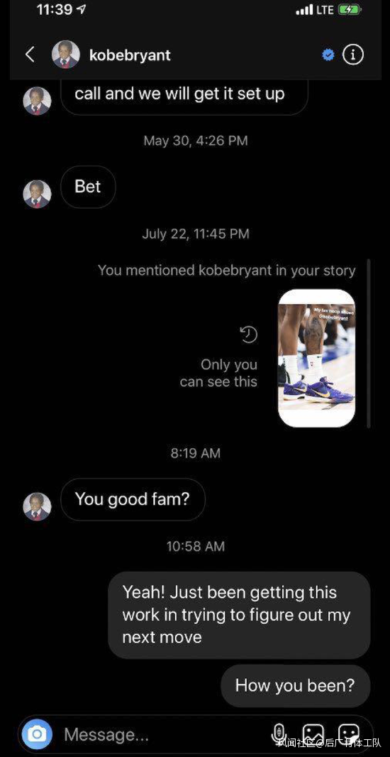 沙里夫當時正在忙晨練沒顧上看手機,一直到10點58分,他才回復了科比: